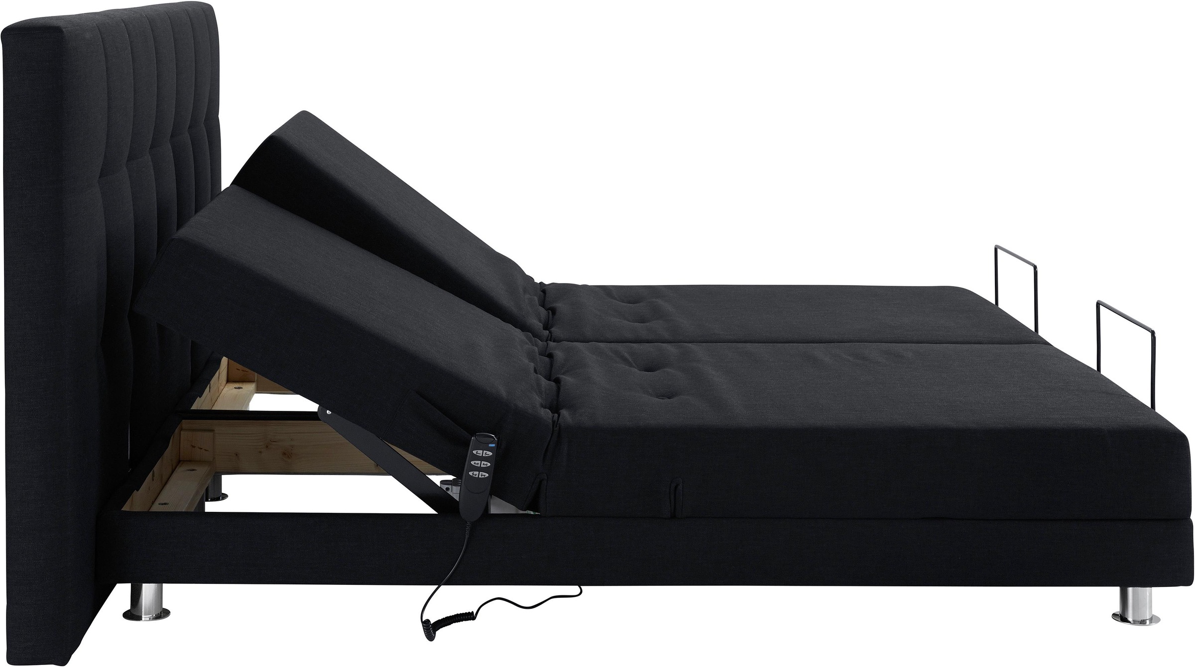 Elektrisch verstellbares boxspringbett mit bettkasten.